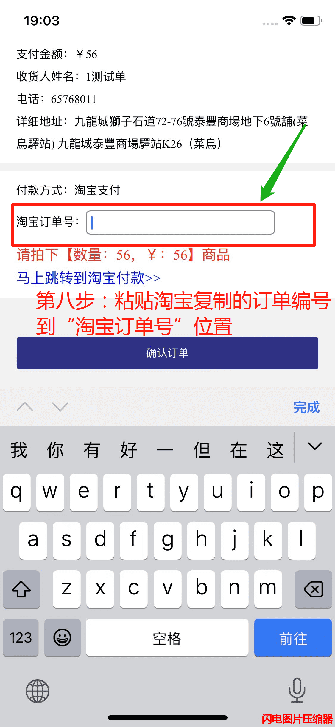 8、粘贴淘宝复制的订单编号到“淘宝订单号”位置。