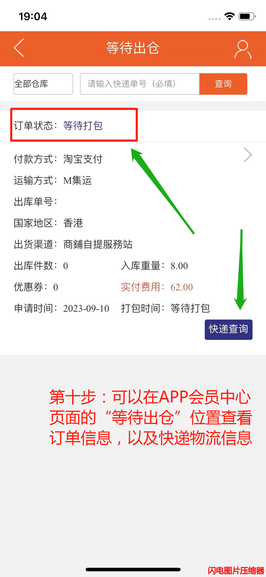 10、 可以在APP会员中心页面的“等待出仓”位置查看订单信息,以及快递物流信息。